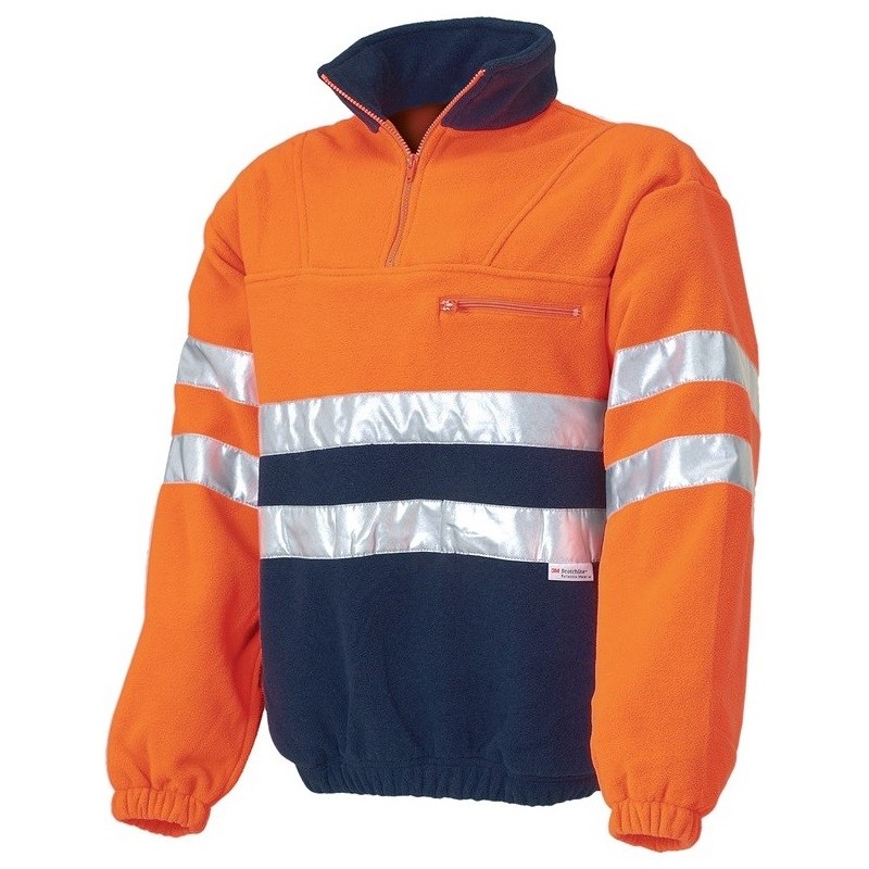 Bluza o wysokiej widoczności, kołnierz z krótkim zamkiem, w dolnej części i w mankietach wszyta gumka. Dwie kieszenie zewnętrzne i zapinana na zamek kieszonka na piersi.