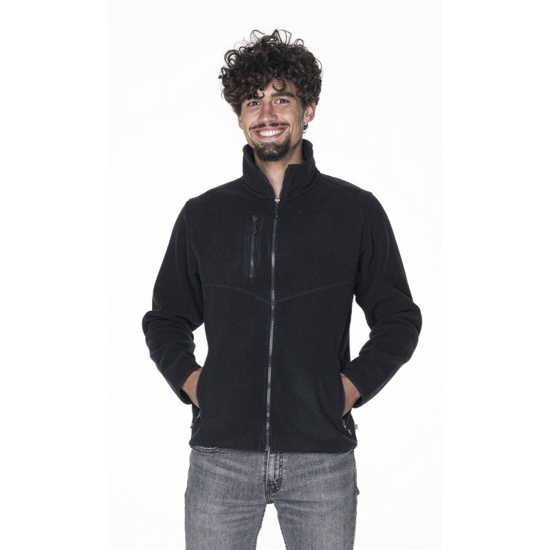 Gramatura: 450 g/m2Skład: 100% poliesterOpis: -ciepły męski polar;-obustronne wykończenie antypillingowe zapobiegające mechaceniu się;-kieszeń na piersi i kieszenie boczne zapinane na zamek;-ozdobne szwy