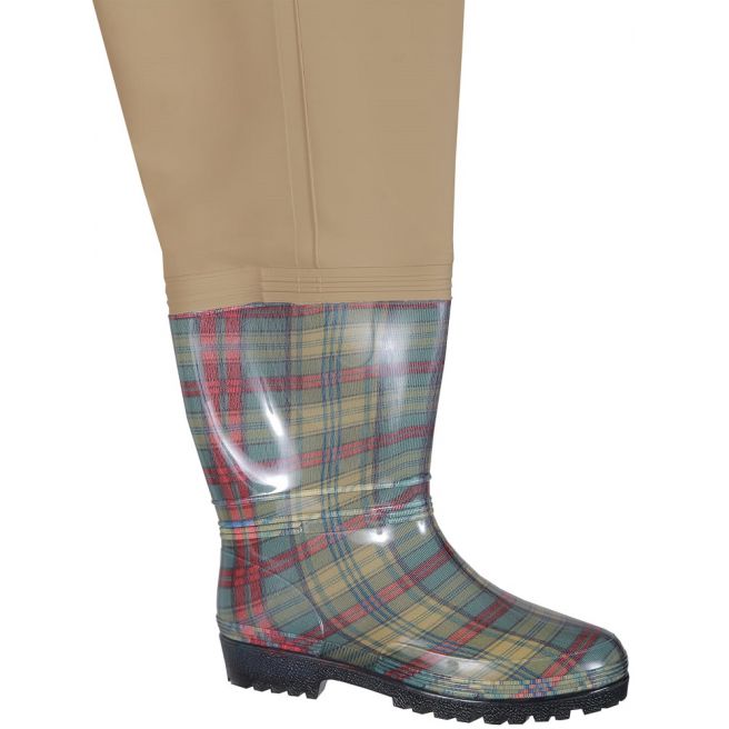 Damskie spodniobuty o ponadczasowym designie i atrakcyjnej kolorystyce. Produkowane z materiału o obniżonej gramaturze, zapewniającego komfort użytkowania. Doskonale chronią przed wodą lub wilgotną ziemią. Technika obustronnego zgrzewania zwiększa wytrzymałość szwów. Wyposażone w  regulację w pasie za pomocą nap. Model przeznaczony jest w szczególności dla aktywnych pań, których pasją jest wędkowanie lub ogrodnictwo.