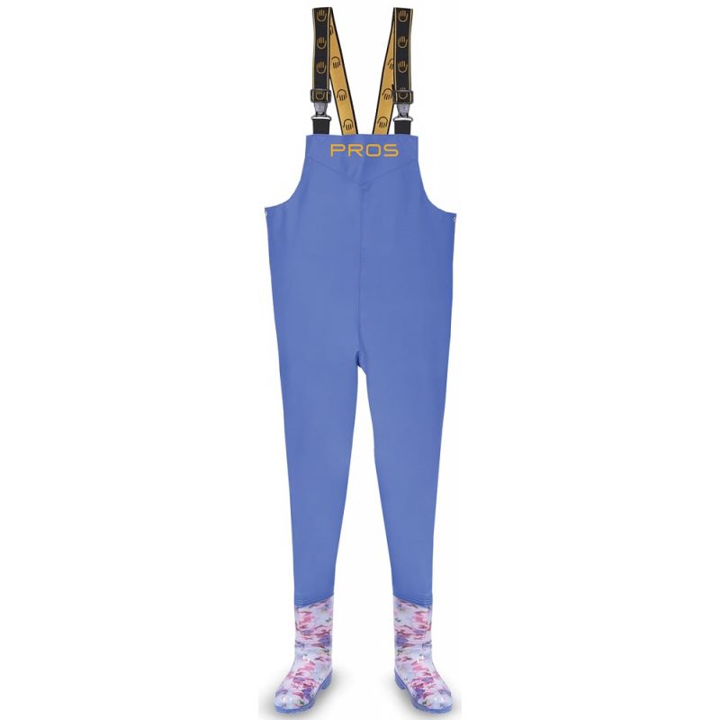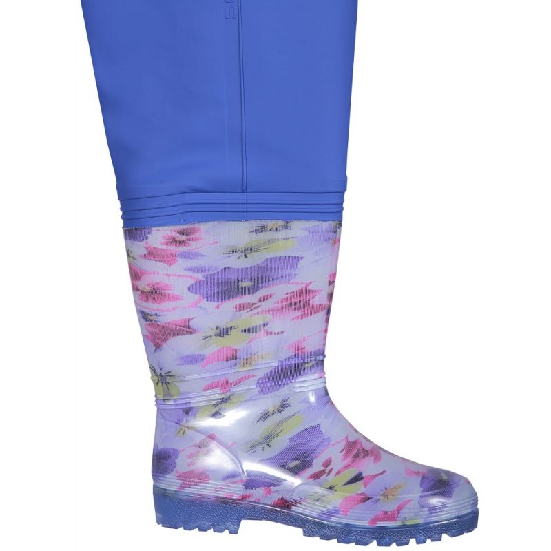 Damskie spodniobuty o ponadczasowym designie i atrakcyjnej kolorystyce. Produkowane z materiału o obniżonej gramaturze, zapewniającego komfort użytkowania. Doskonale chronią przed wodą lub wilgotną ziemią. Technika obustronnego zgrzewania zwiększa wytrzymałość szwów. Wyposażone w regulację w pasie za pomocą nap. Model przeznaczony jest w szczególności dla aktywnych pań, których pasją jest wędkowanie lub ogrodnictwo.