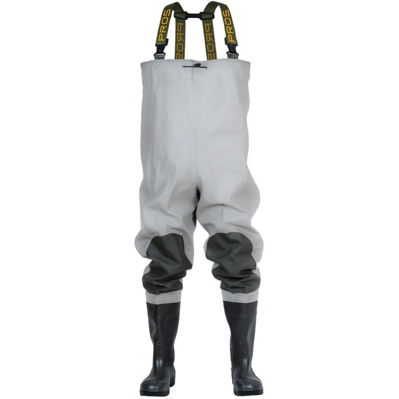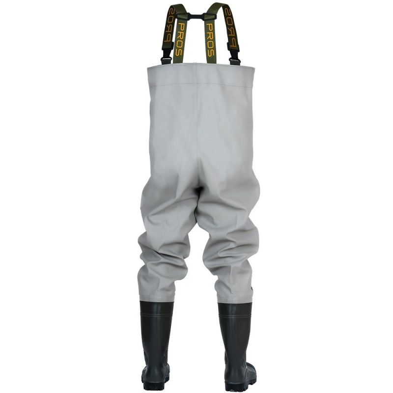 Spodniobuty premium z wgrzanymi na stałe wysokiej jakości kaloszami i wzmocnieniami na kolanach. Zapewniają skuteczną ochronę przed wodą. Technika obustronnego zgrzewania zwiększa wytrzymałość szwów. Kieszeń wewnętrzna ułatwia przechowywanie dokumentów. Komfort użytkowania produktu poprawiają regulowane szelki.