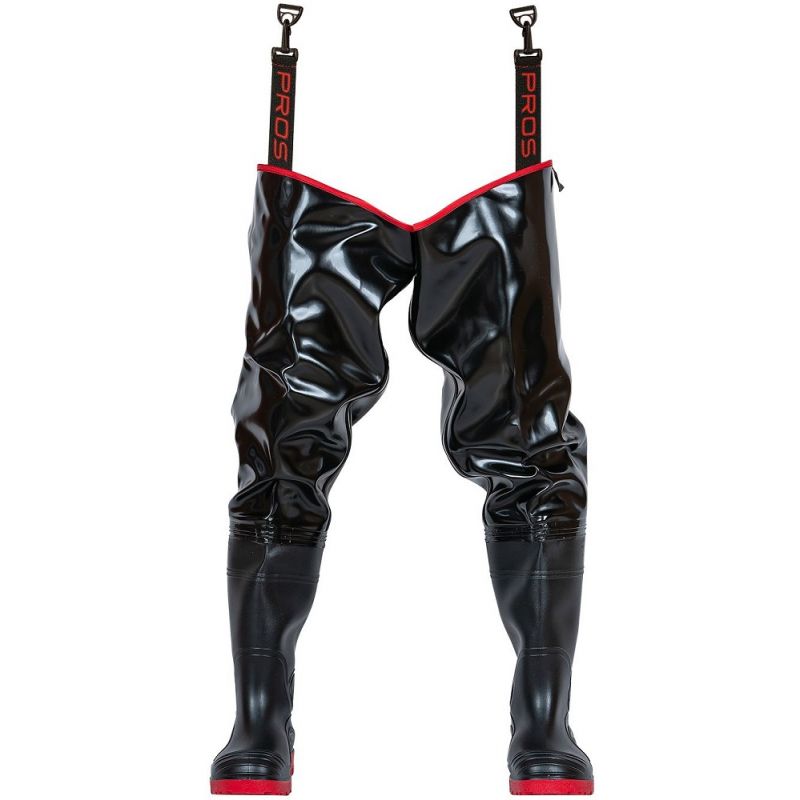Wodery o podwyższonej odporności na uszkodzenia mechaniczne, z wgrzanymi na stałe wysokiej jakości kaloszami antypoślizgowymi. Produkowane z wodoochronnego, wytrzymałego materiału zapewniającego skuteczną ochronę kończyn przed wilgocią. Technika obustronnego zgrzewania zwiększa wytrzymałość szwów. Wyposażone w wygodne, gumowe mocowania podtrzymujące.
