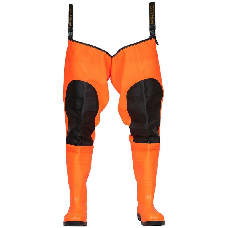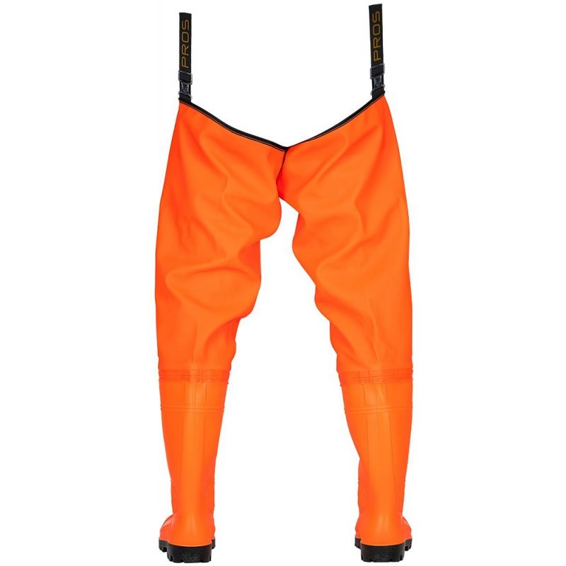 Wodery z wysokiej jakości kaloszami, wgrzanymi na stałe. Skutecznie chronią przed wodą. Technika obustronnego zgrzewania zwiększa wytrzymałość szwów. Funkcjonalność podnoszą specjalne wzmocnienia na kolanach, wkładka zapobiegająca przebiciu spodu kalosza i specjalny nosek zabezpieczający palce przed urazami. Materiał w wersji fluo poprawia widoczność w trudnych warunkach. Wodery są wyposażone w wygodne mocowania podtrzymujące do paska spodni.