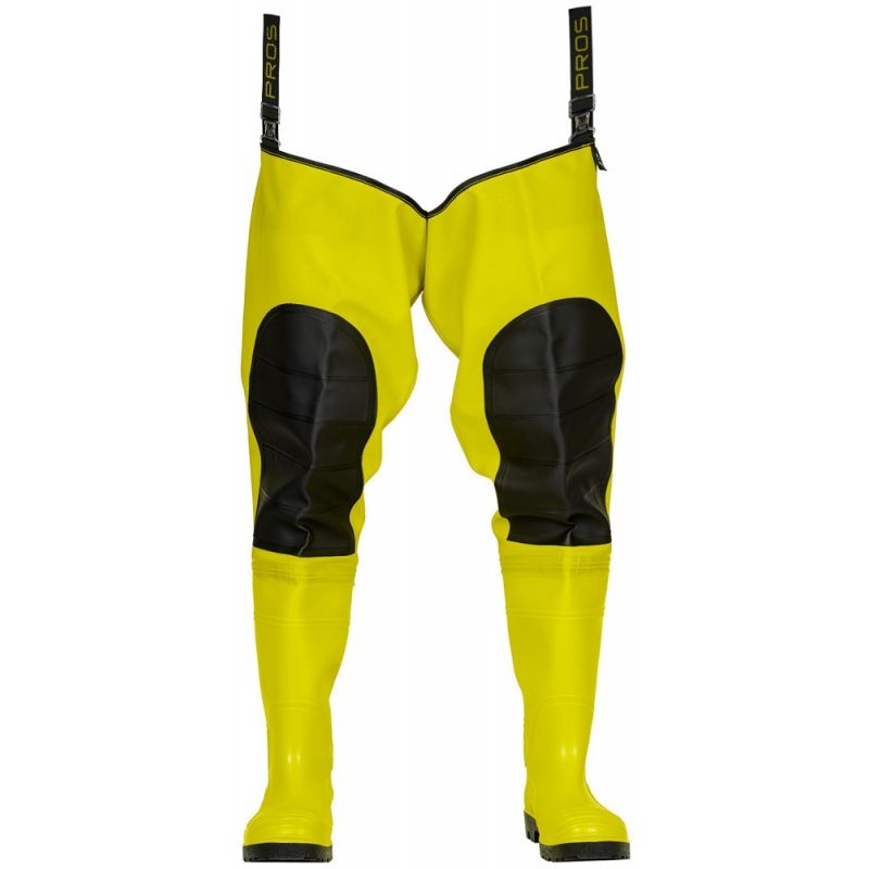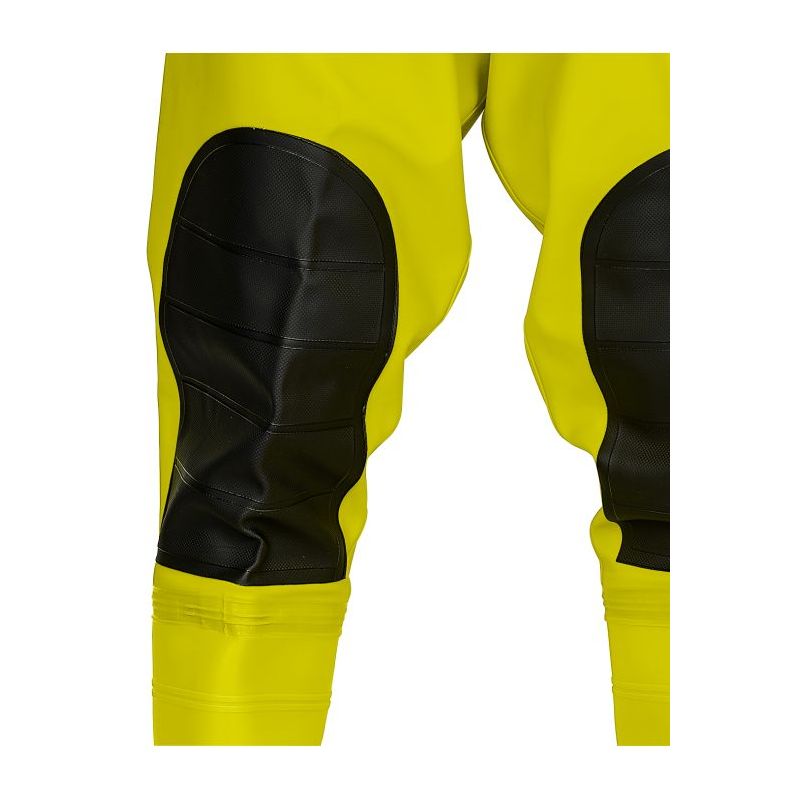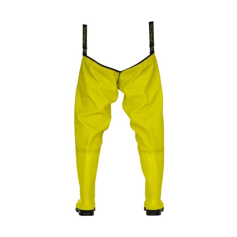 Wodery z wysokiej jakości kaloszami, wgrzanymi na stałe. Skutecznie chronią przed wodą. Technika obustronnego zgrzewania zwiększa wytrzymałość szwów. Funkcjonalność podnoszą specjalne wzmocnienia na kolanach, wkładka zapobiegająca przebiciu spodu kalosza i specjalny nosek zabezpieczający palce przed urazami. Materiał w wersji fluo poprawia widoczność w trudnych warunkach. Wodery są wyposażone w wygodne mocowania podtrzymujące do paska spodni.
