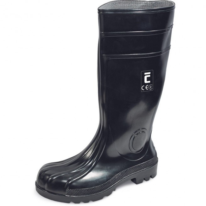 Wysokie kalosze antystatyczne wykonane z PVC i nitrylu z metalowym podnoskiem. Zaprojektowane z myślą o ochronie przed wodą, zabrudzeniami i przebiciem. Podeszwa odporna na działanie kwasów, olejów, paliw i tłuszczów. Wysokość ok. 38 cm, waga ok. 2,5 kg.