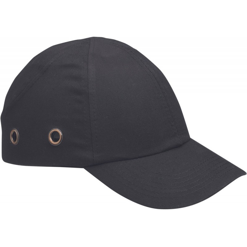 Czapka bawełniana ze sztywnym daszkiem i plastikowym wzmocnieniem wewnętrznym, regulowany rozmiar, spełnia wymogi normy EN 812.