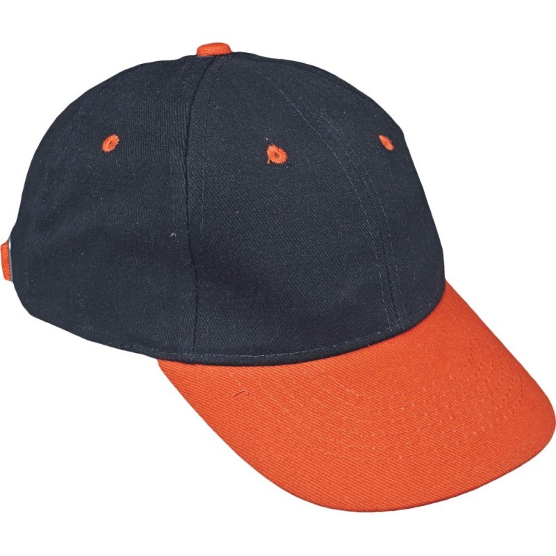 Czapka baseballówka z możliwością regulacji obwodu głowy za pomocą metalowej klamry.