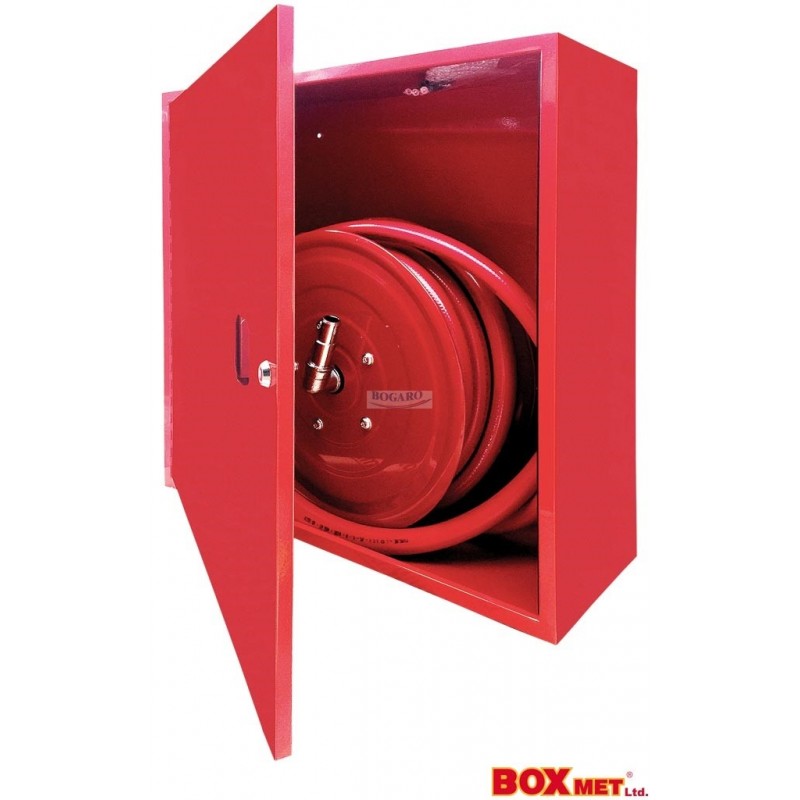 Hydrant wewnętrzny zawieszany z wężem półsztywnym. - długość węża: 20 m - wykonany z czarnej blachy stalowej