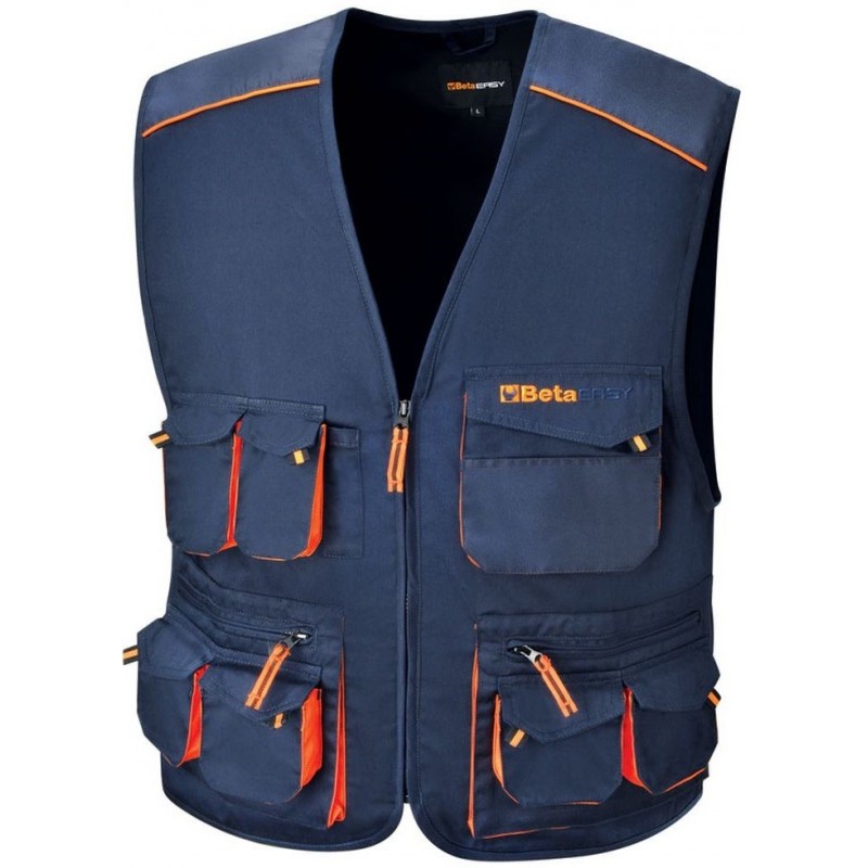 - Sześć przednich kieszeni na małe narzędzia z patkami zapinanymi na rzepy, kieszeń na długopis
