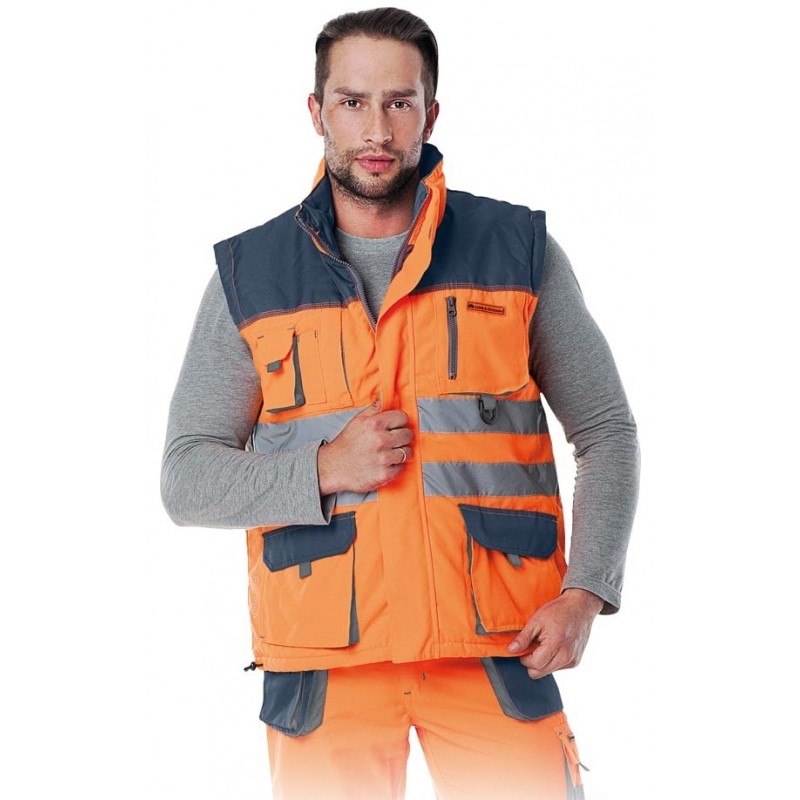 Bezrękawnik ocieplany FORMEN. - powłoka 80% poliester, 20% bawełna o gramaturze 270 g/m2 (kolor CSB: 100% poliester) - wyściółka 100% poliester o gramaturze 130 g/m2 - podszewka 100% poliester tafta 190T o gramaturze 50 g/m2 - zapinany na suwak z dodatkowymi zapięciem na rzepy - trzy kieszenie na klatce piersiowej, w tym dwie na suwak i jedna na telefon, jedna wąska kieszonka na przybory np. długopis oraz dwie dolne - końcówka do przypięcia kluczy - pętelki umożliwiające doczepienie dodatkowych akcesoriów - na ramionach bezrękawnika wzmocnienie z szarego materiału, co zwiększa jego wytrzymałość na przetarcia - staranne wykonanie oraz zwiększona wytrzymałość zapewniają wysoki komfort użytkowania - testowane na zawartość szkodliwych dla zdrowia substancji zgodnie ze standardami OEKO-TEX® Standard 100 - materiał i pasy testowane zgodnie z normą EN20471