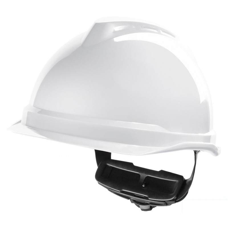Hełm MSA V-Gard 520 z krótkim daszkiem.