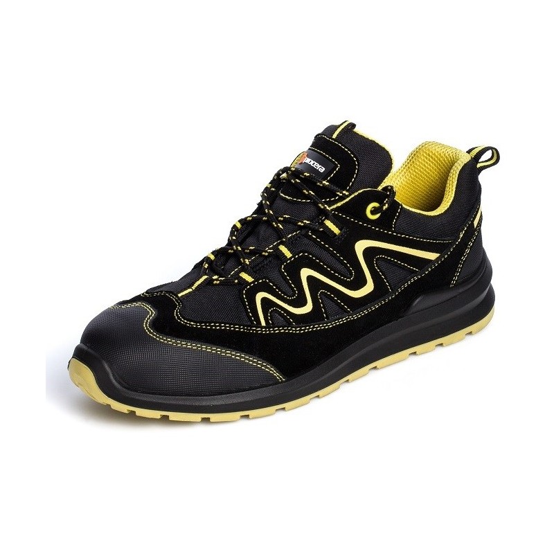 Buty bezpieczne STREET z metalowym podnoskiem ochronnym. Cholewka obuwia wykonana jest ze skóry welurowej i oddychającego materiału typu Cordura. Przednia i tylna część dodatkowo wzmocnione materiałem ochronnym. Podeszwa z dwuwarstwowego poliuretanu PU/PU, antyelektrostatyczna, antypoślizgowa, idealnie sprawdzająca się na wszelkiego rodzaju nawierzchniach. Absorpcja energii w części piętowej. Wyściółka w kolorze żółtym z oddychającego materiału 3D Mesh. Sportowy design. Kategoria S1.
