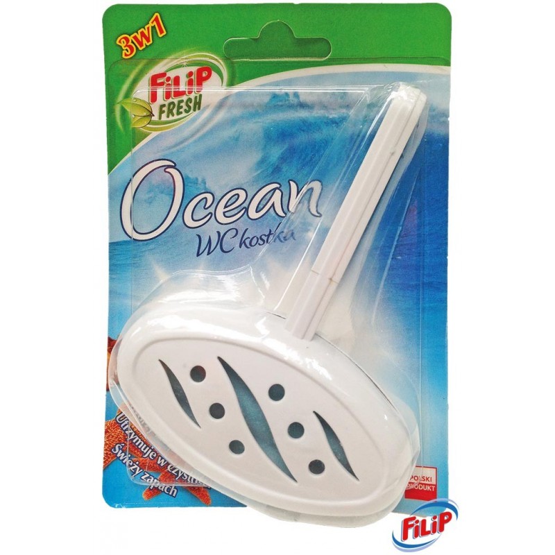 Kostka do wc zawieszka z wkładem o zapachu morskim.