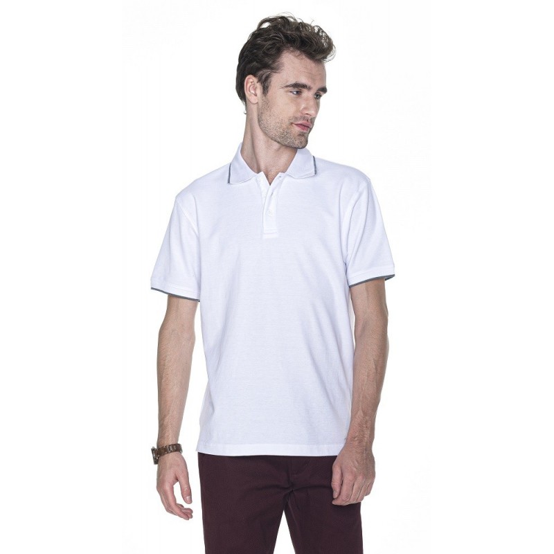 Gramatura: 200g/m2Skład: 90% bawełna czesana, 10% poliesterOpis:-dekoracyjne paski na rękawach i kołnierzu;-taśma twillowa;-rozcięcie na bokach;-podwójne szwy