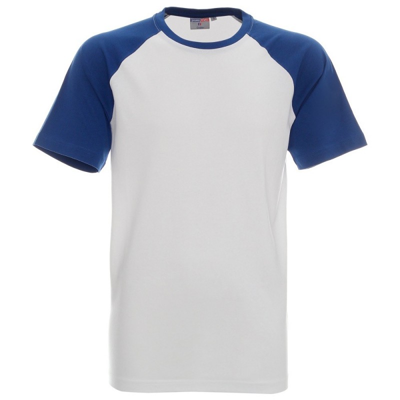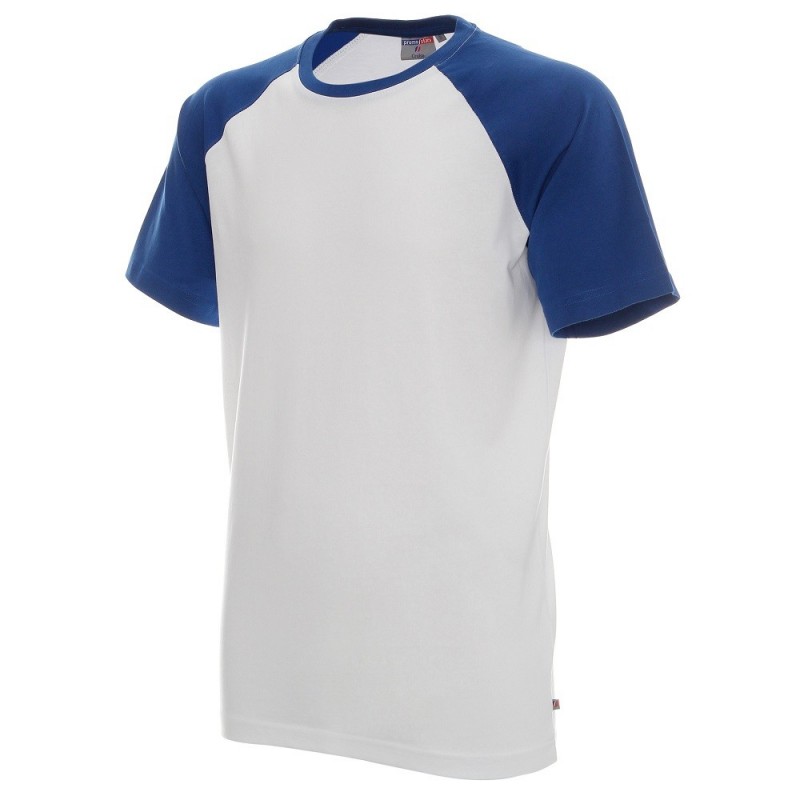 Męska koszulka Cruise Promostars w kolorze białym z rękawkami w kolorze niebieskim o klasycznym fasonie. Dobrej jakości materiał nie powoduje kurczenia się podczas prania.