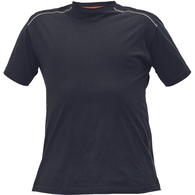 Męski podkoszulek wykonany z czesanej bawełny, splot single jersey • czarny, kontrastowy tył z odblaskowym pipingiem • dekoracyjne przeszycia w odblaskowym kolorze
