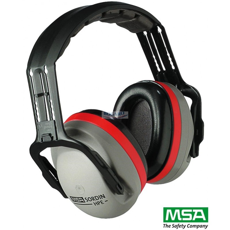 Nauszniki na pałąku nagłownym HPE. - SNR = 32 dB, H = 32 dB, M = 29 dB, L = 23 dB - grube i miękkie, wypełnione gąbką poduszki zapewniają wysoki komfort i doskonałą izolację - wyposażone w szeroki pałąk z wentylowanym obiciem i z regulowaną siłą nacisku - trzy różne pozycje noszenia ułatwiają użytkowanie - szerokie i miękkie obicie pałąka i regulowana siła zapewnia trwałe i indywidualne dopasowanie - dwupunktowy system montowania części usznej pozwala na równomierne rozłożenie nacisku na poduszkach - system sprężynowy zapewnia mały nacisk - znajdują zastosowanie przy redukcji poziomu hałasu zarówno o wysokiej jak i niskiej częstotliwości - zgodne z normą EN352-1