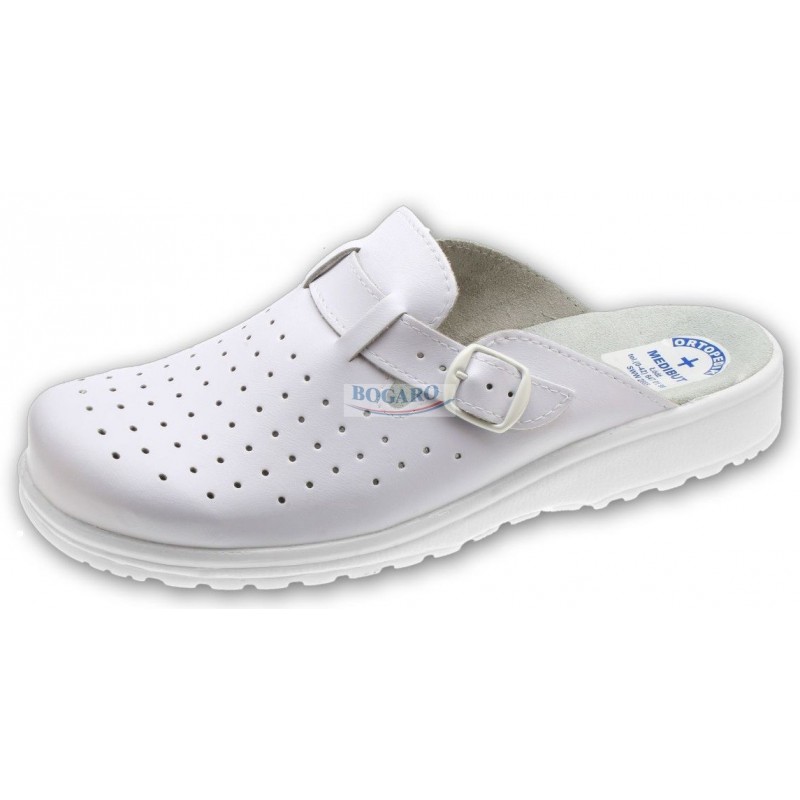 Obuwie męskie na spodach przeciwpoślizgowych z profilem ortopedycznym. Wyściółka i cholewka skórzana, możliwość regulacji tęgości. Cholewka z perforacją.