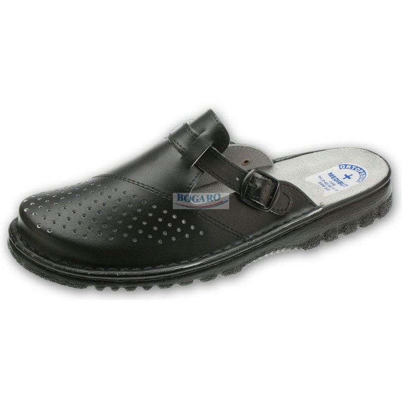 Obuwie męskie przeszywane, na spodach przeciwpoślizgowych z profilem ortopedycznym. Wyściółka i cholewka skórzana, możliwość regulacji tęgości. Cholewka gładka lub z perforacją.