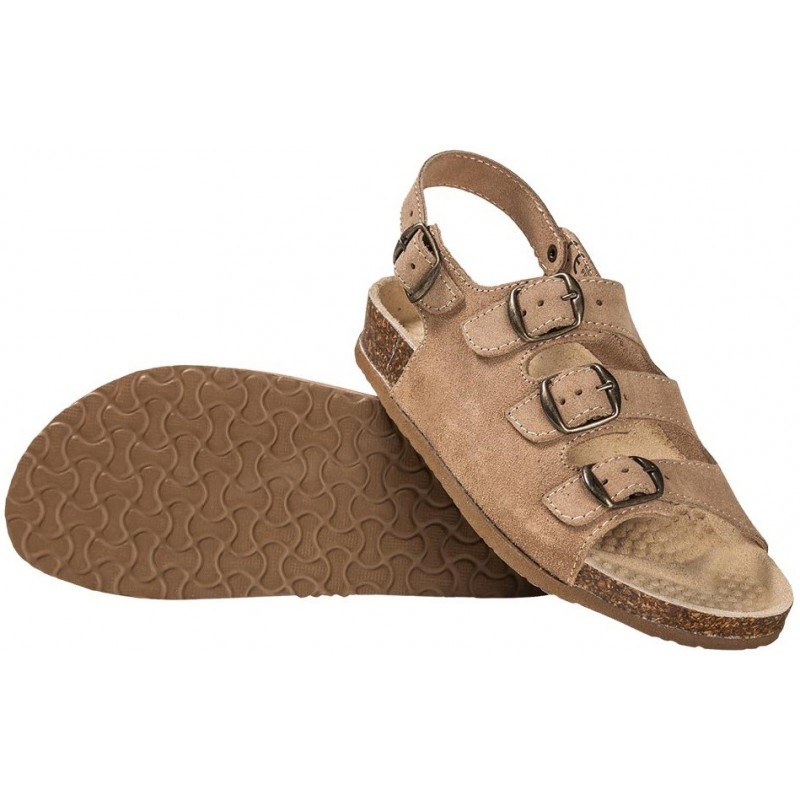 -wierzch z naturalnej miękkiej skóry z trzema paskami łączonymi klamerkami, które umożliwiają regulację tęgości oraz paskiem na pietę