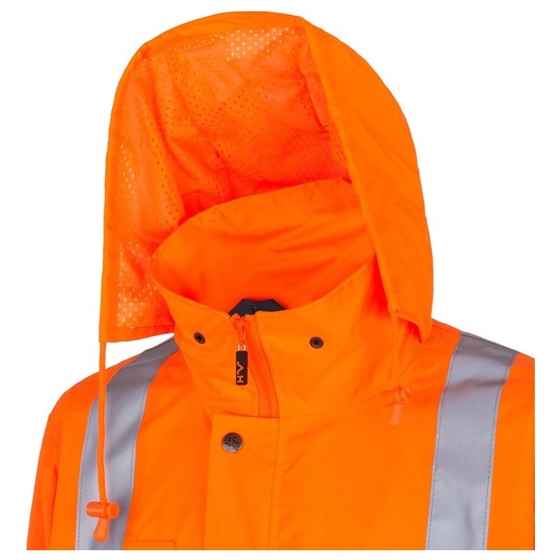 Materiał: - materiał główny (żółty odblaskowy, pomarańczowy odblaskowy): poliester 300D Oxford PU, pokryty Teflonem, 185 g/m2 - podszewka: siatka 100% poliester 65 g/m2 , - wyściółka rękawów: poliester 210T, 58 g/m2