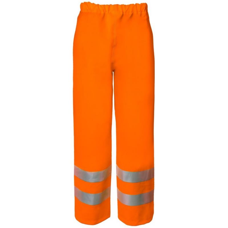 Spodnie do pasa, przeznaczone do pracy przy ograniczonej widzialności, chroniące przed wiatrem i deszczem. Wykonane techniką obustronnego zgrzewania, co zwiększa wytrzymałość szwów. Fluorescencyjny materiał oraz taśmy odblaskowe poprawiają bezpieczeństwo. Guma ściągająca w pasie, jak również regulacja obwodu nogawek za pomocą nap wydatnie wpływają na komfort użytkownika.