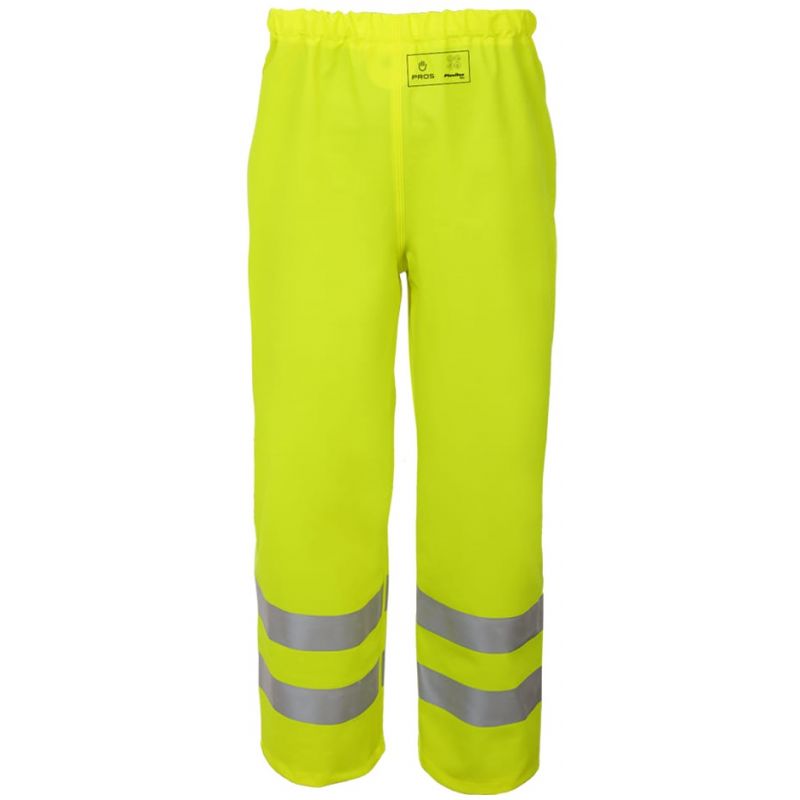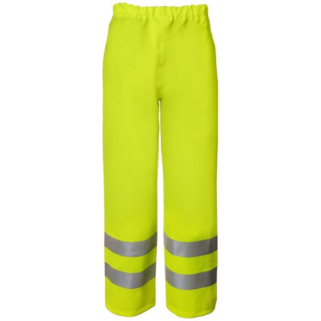 Spodnie do pasa, przeznaczone do pracy przy ograniczonej widzialności, chroniące przed wiatrem i deszczem. Wykonane techniką obustronnego zgrzewania, co zwiększa wytrzymałość szwów. Fluorescencyjny materiał oraz taśmy odblaskowe poprawiają bezpieczeństwo. Guma ściągająca w pasie, jak również regulacja obwodu nogawek za pomocą nap wydatnie wpływają na komfort użytkownika.