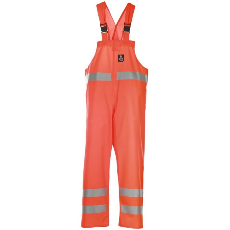 Ubranie składające się z kurtki ¾ oraz spodni ogrodniczek do pracy w złych warunkach atmosferycznych. Dla zwiększenia bezpieczeństwa użytkownika zastosowano taśmy odblaskowe na korpusie, rękawach i nogawkach. Wygodne zapinanie kurtki na napy. Spodnie z regulowanymi szelkami i z dodatkową, szeroką gumą na plecach. Ubranie wykonano techniką obustronnego zgrzewania znacząco zwiększającą wytrzymałość szwów.