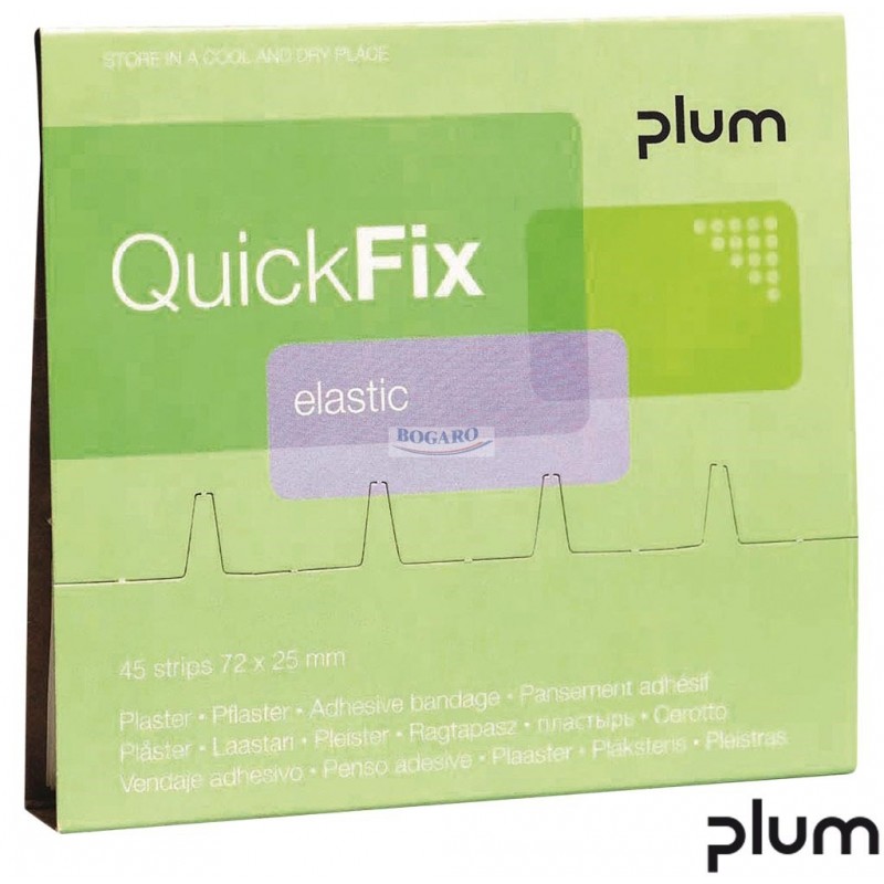 Plastry elastyczne Quick Fix. - poruszają się razem ze skórą, dzięki czemu gwarantują wysoki komfort użytkowania - wyprodukowane z oddychającego materiału ochronnego - każdy plaster jest zapakowany osobno - opakowanie zawiera 45 plastrów - mogą być używane jako zapas do dozownika jak i do samodzielnego użytku