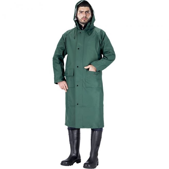 Wysokiej jakości płaszcz przeciwdeszczowy z elastycznego materiału o wysokiej wytrzymałości.