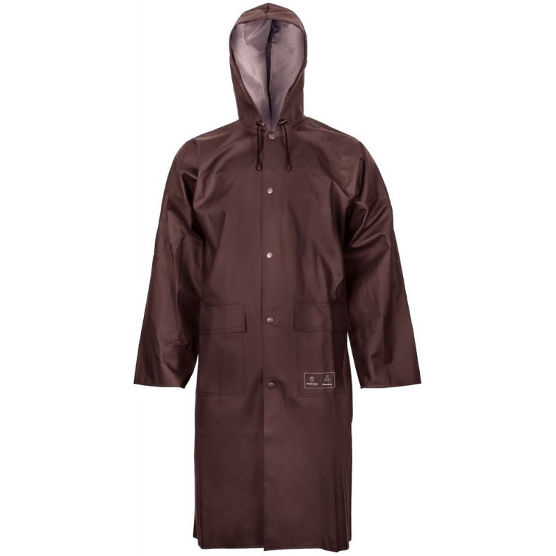Płaszcz szczególnie przydatny w niesprzyjających warunkach pogodowych. Zwiększona długość chroni uda i kolana przed przemoczeniem. Wykonany techniką obustronnego zgrzewania, co skutecznie zwiększa wytrzymałość szwów. Posiada skuteczne zapięcie na metalowe napy oraz kaptur ze ściągaczem i dwie przednie kieszenie przykryte patkami, zapobiegające przedostawaniu się wody do wewnątrz.
