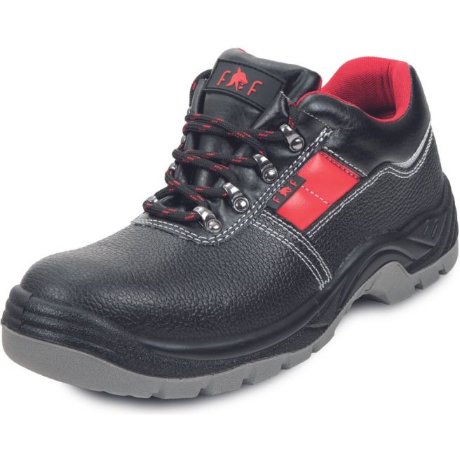 Ochronne półbuty ze stalowym podnoskiem i stalową wkładką antyprzebiciową. Podeszwa wykonana z PU/PU odporna na oleje. Cholewka wykonana z tłoczonej skóry dwoinowej. Srebrne elementy odblaskowe.