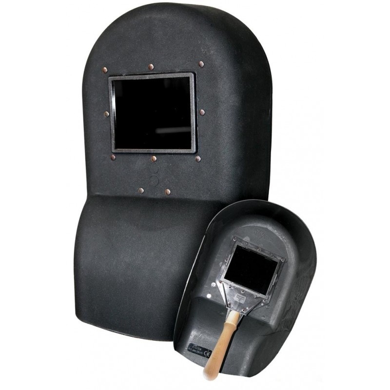 Tarcza spawalnicza do trzymania w ręku z rączką z twardego drewna.