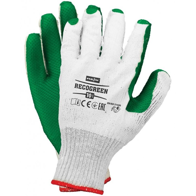 Rękawice ochronne powlekane zakończone ściągaczem. - wykonane z dzianiny - powlekane podwójnie wulkanizowaną gumą w kolorze zielonym - bardzo odporne na ścieranie, przecieranie, a także rozdarcie - idealne dla brukarzy - stosowane w budownictwie oraz przemyśle transportowym - potocznie zwane extra grip