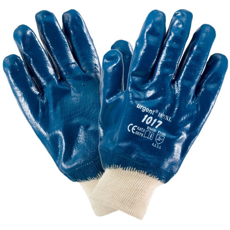Rękawica ochronna, wykonana z bawełny powlekana nitrylem zakończona ściągaczem, gramatura 100g.
