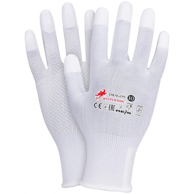 Rękawice ochronne wykonane z nylonu powlekane na końcówkach palców z jednostronnym mikronakropieniem.