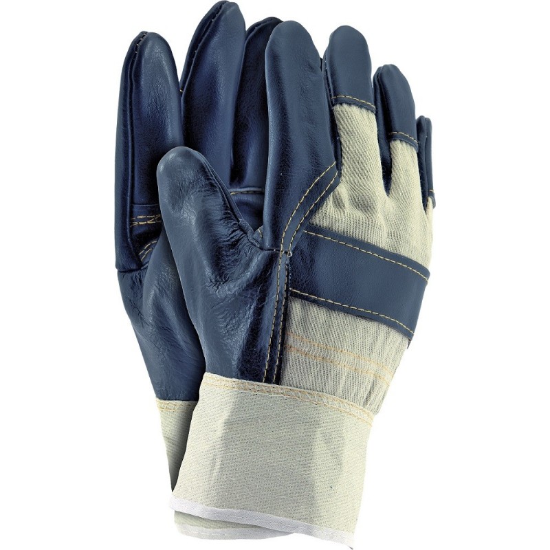 Rękawice ochronne wzmacniane skórą bydlęcą w ciemnych kolorach.