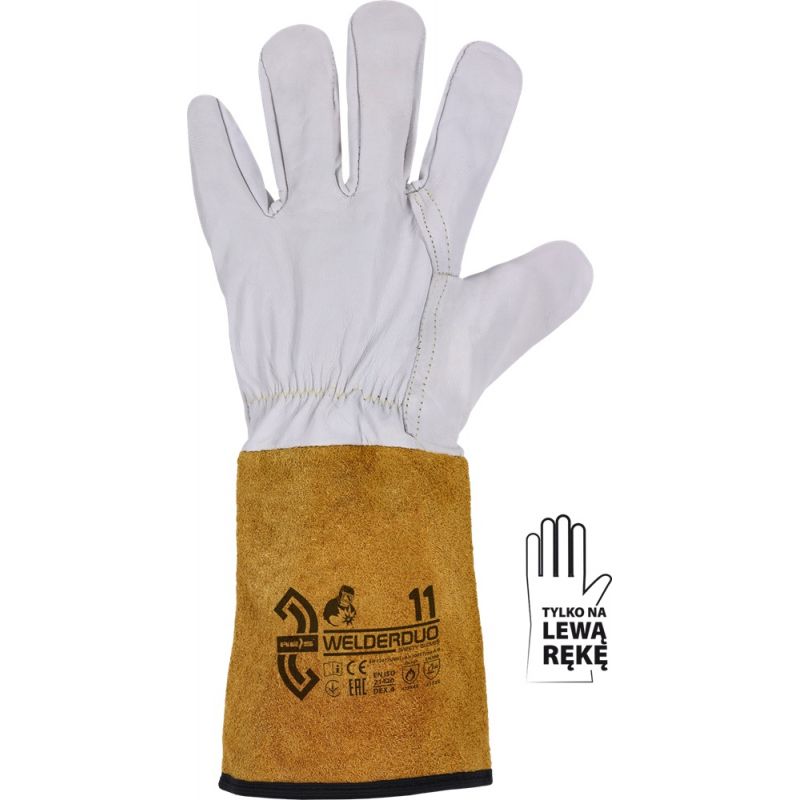 Rękawica spawalnicza na lewą rękę.