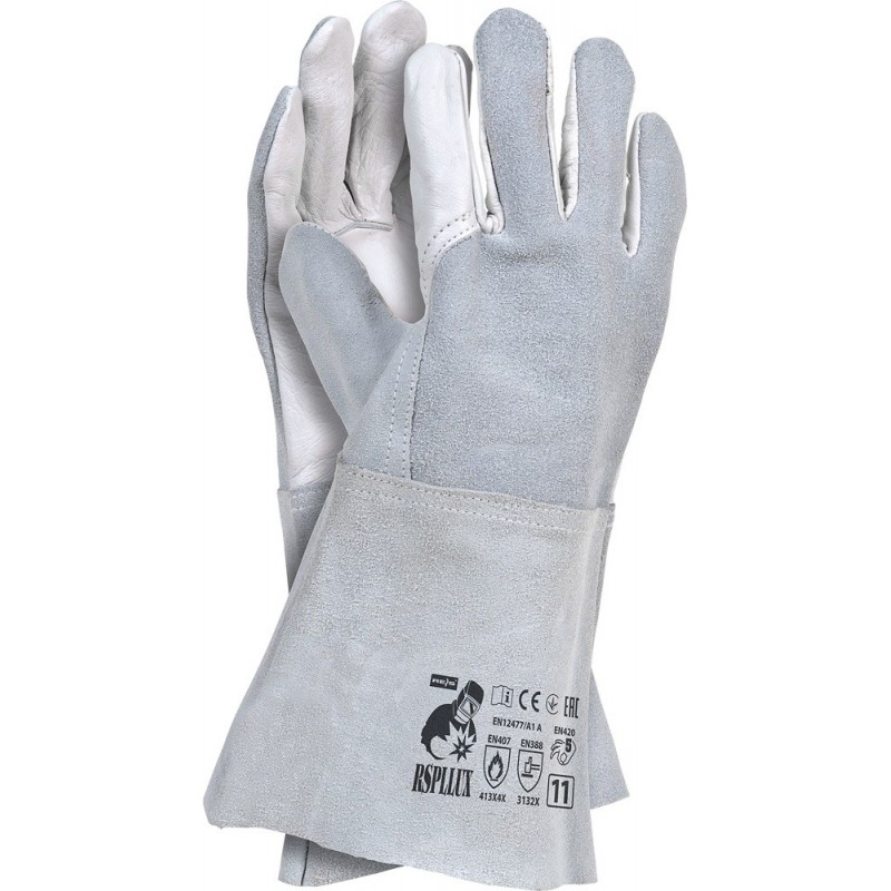 Rękawice spawalnicze w całości wykonane ze skóry.