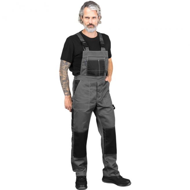 Spodnie ochronne ogrodniczki Multi Master. - 65% poliester, 35% bawełna - gramatura 262 g/m2 - ściągacz w pasie oraz guziki umożliwiają regulację co pozwala na lepsze dopasowanie - możliwość regulacji długość za pomocą szelek - dwie boczne kieszenie oraz jedna podłużna na nogawce - dodatkowo trzy kieszenie w górnej partii spodni, w tym jedna na suwak - duża liczba kieszeni zwiększa funkcjonalność spodni - modne połączenie kolorów nadaje atrakcyjny wygląd - sprawdzona jakość, udoskonalony design
