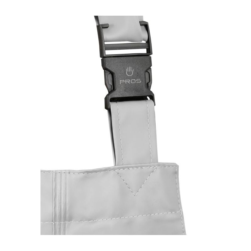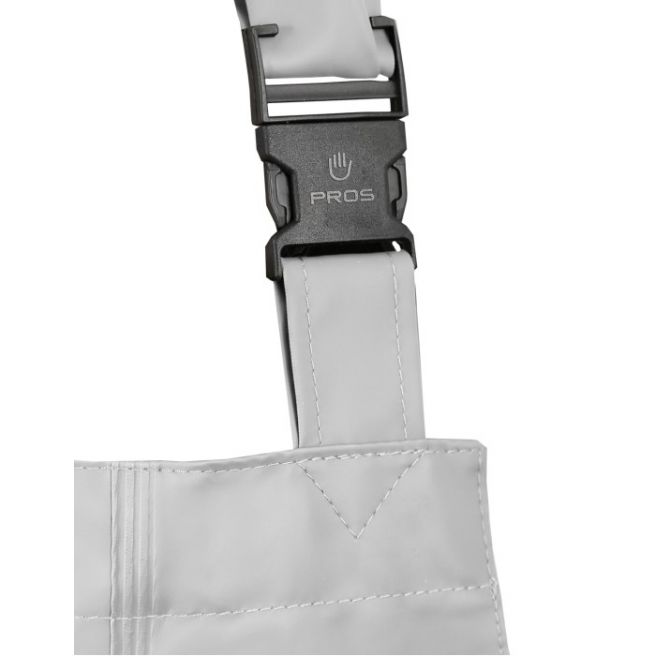 Spodnie doskonale sprawdzają się w pracy w wilgotnym środowisku i trudnych warunkach pogodowych. Regulowane szelki i wygodne zapięcie podnoszą funkcjonalność. Wykonanie techniką obustronnego zgrzewania skutecznie zwiększa wytrzymałość szwów. Dodatkowe wzmocnienie na kolanach podnosi odporność spodni na przetarcia, zaś wysoki przód chroni brzuch użytkownika przed przemoczeniem.