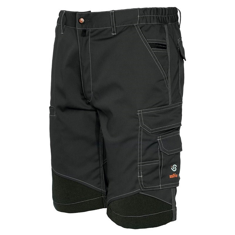 Bermudy z technologicznie zaawansowanego materiału ze wstawkami z tkaniny odpornej na przetarcia i z odblaskowymi elementami. Dopasowany krój i elastyczny materiał zapewniają taki sam komfort, jak podczas noszenia najlepszych technologicznie spodni ze świata sportu. 9 kieszeni, w tym kieszeń na telefon komórkowy i kieszeń na miarkę. Potrójne szwy i wyjątkowo odporny materiał gwarantują doskonałą wytrzymałość nawet podczas najcięższych prac.