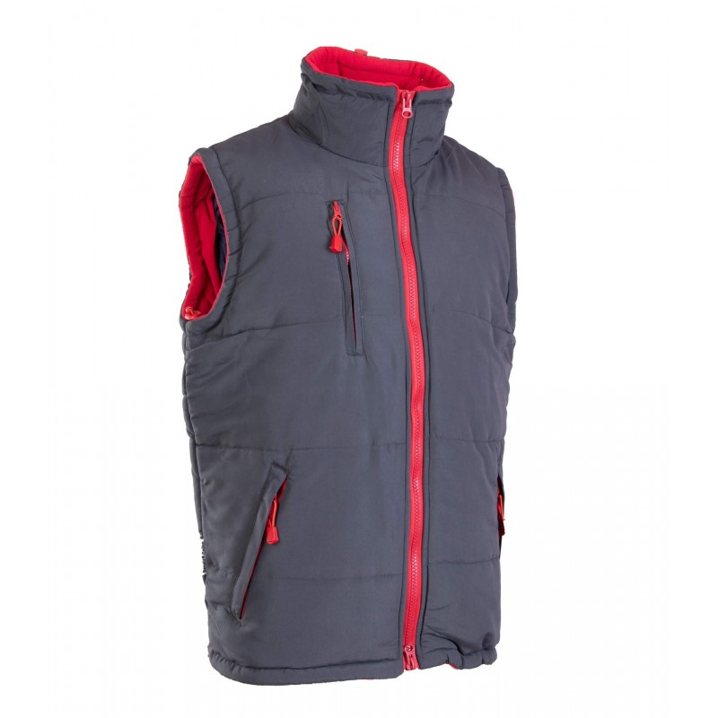 Kamizelka ocieplana Benefit Colino marki Polstar w kolorze szaro-czerwonym zapewnia bardzo dobrą ochronę przed chłodem i jednoczesnie gwarantuje pełną swobodę ruchów. Ten męski model doskonale uzupełni każdą odzież roboczą podczas użytkowania w zmiennych warunkach pogodowych. Kamizelka doskonale dopasowuje się do kazdej sylwetki, a puchowa ocieplina zapewnia komfort w chłodne dni. Liczne praktyczne kieszenie, w tym także przeznaczona na dokumenty, specjalna na telefon oraz boczne kieszenie zapinane na zamek. Kołnierz w formie stójki z chowanym kapturem regulowany sznurogumkami.