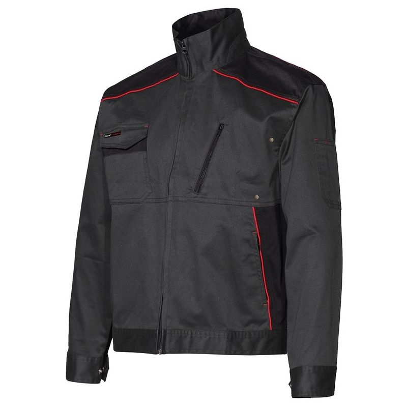 Kurtka robocza z mieszanej elastycznej tkaniny z czterema przednimi kieszeniami; kryty zamek z przodu, regulacja w dolnej części. Trzy odblaskowe lamówki zapewniają widoczność w przypadku słabej widoczności(tam gdzie nie jest wymagany produkt z certyfikatem EN20471 ). Pakowane w pudełko.