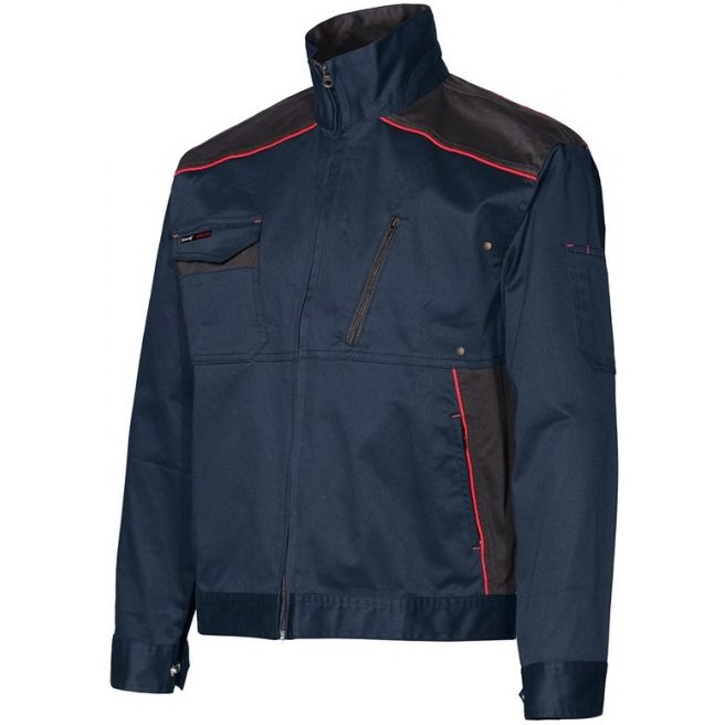 Kurtka robocza z mieszanej elastycznej tkaniny z czterema przednimi kieszeniami; kryty zamek z przodu, regulacja w dolnej części. Trzy odblaskowe lamówki zapewniają widoczność w przypadku słabej widoczności(tam gdzie nie jest wymagany produkt z certyfikatem EN20471 ). Pakowane w pudełko.