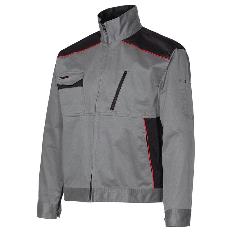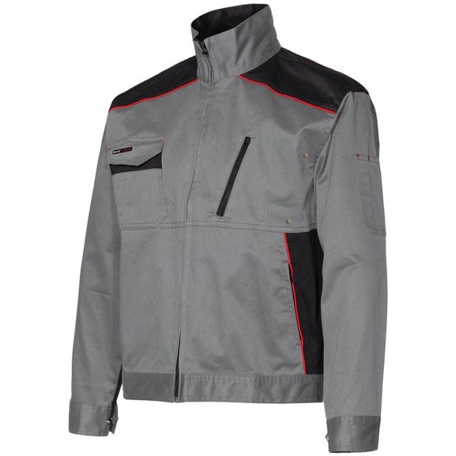 Kurtka robocza z mieszanej elastycznej tkaniny z czterema przednimi kieszeniami; kryty zamek z przodu, regulacja w dolnej części. Trzy odblaskowe lamówki zapewniają widoczność w przypadku słabej widoczności(tam gdzie nie jest wymagany produkt z certyfikatem EN20471 ). Pakowane w pudełko.