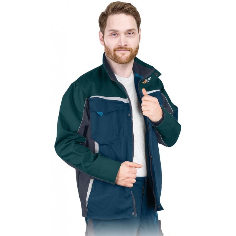 Bluza ochronna LH-NA-J GN NEW AGE wykonana z materiału typu Canvas z lekką wewnętrzną podszewką i zwiększoną wytrzymałością na zużycie. Duża ilość kieszeni pomaga przechować różne przedmioty w czasie pracy. Kołnierz w formie stójki dodatkowo zabezpiecza przed chłodem. Na kurtce umieszczono także odblaskowe elementy polepszające widoczność