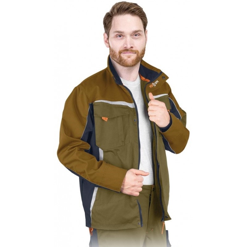 Bluza ochronna LH-NA-J KHGB NEW AGE wykonana z materiału typu Canvas z lekką wewnętrzną podszewką i zwiększoną wytrzymałością na zużycie. Duża ilość kieszeni pomaga przechować różne przedmioty w czasie pracy. Kołnierz w formie stójki dodatkowo zabezpiecza przed chłodem. Na kurtce umieszczono także odblaskowe elementy polepszające widoczność