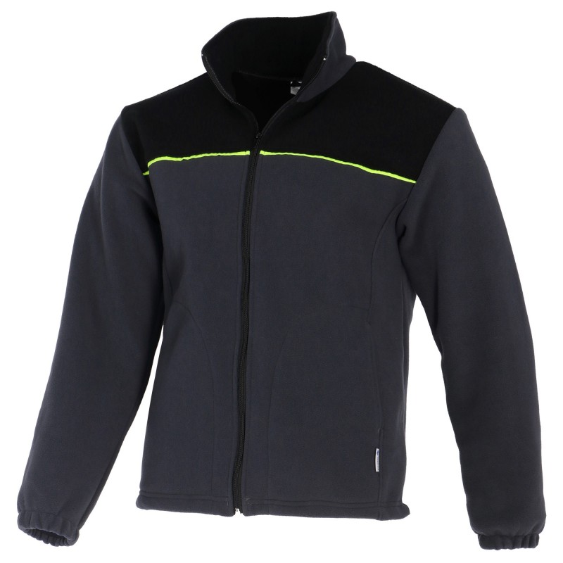 Klasyczna bluza polarowa w modnym wzornictwie. Kontrastowy pasek dodaje polarowi dodatkowego stylu. Na dole bluzy specjalna gumka do swobodnego regulowania obwodu. Ściągacz na makietach utrzymuje rękawy zawsze powyżej dłoni co pozwala na wygodne prowadzenie pracy. W miejscach najbardziej narażonych na rozprucie rygle wzmacniające zwiększające żywotność bluzy.