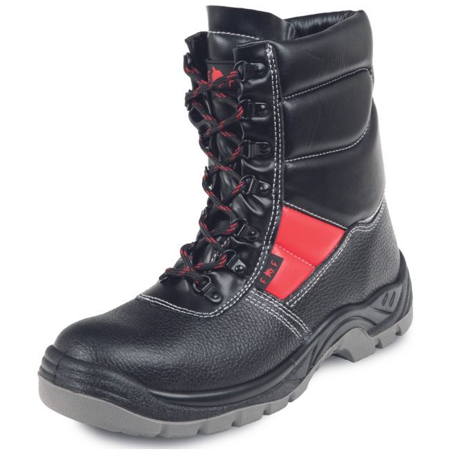 Buty ochronne ocieplane FRIDRICH&FRIDRICH SC-03-010 HIGH ANKLE WINTER S3 SRA to wysokie trzewiki ochronne ze stalowym podnoskiem i stalową wkładką antyprzebiciową. Antystatyczna, olejoodporna podeszwa wykonana z PU/ PU. Absorpcja energii w obcasie. Cholewka wykonana z czarnej, wodoodpornej zadrukowanej skóry typu Buffalo. Od wewnątrz ocieplane, wyściełane szarym, sztucznym futerkiem.